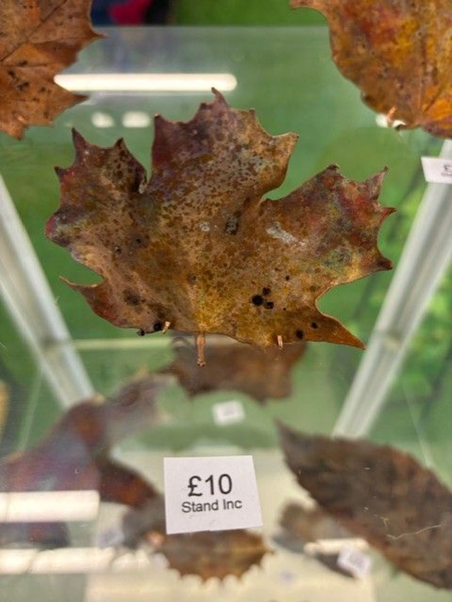 These natural fallen leaves are collected from Westport Lake. They are then put through an electro forming process similar to electroplating a gold or silver ring. This therefore coats the leaf in copper whilst maintaining its wonderful beauty of nature at its finest detail. Each leaf is completely different and comes in a variety of different sizes.