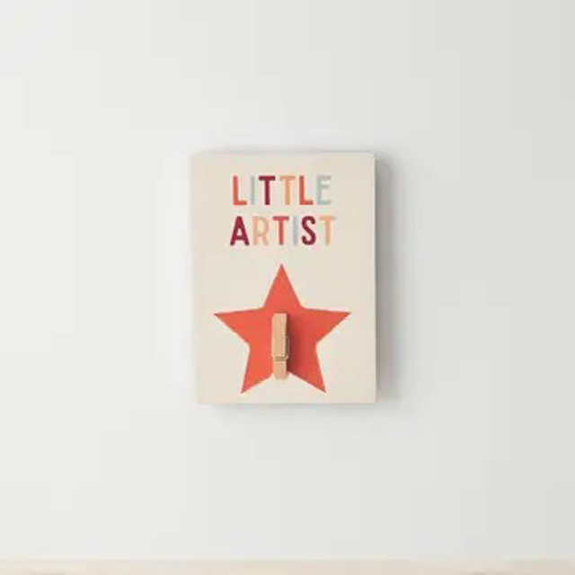 Celebrate the work of your own little artist by displaying it on this colourful and cute display sign with peg.