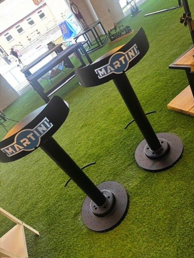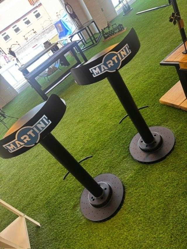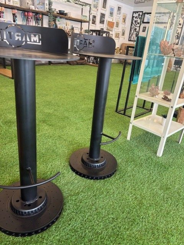 NOTHING SAYS BESPOKE LIKE A CUSTOM SET OF BRAKE DISC MARTINI BAR STOOLS-PERFECT FOR THAT HIDDEN MAN CAVE!