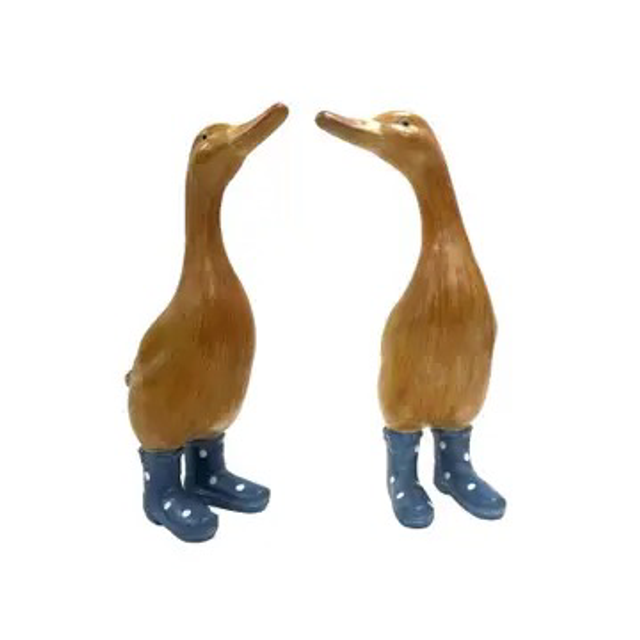 These cute ducks, perfect for both indoor and outdoor spaces, sport coloured boots and a charming wooden effect. Crafted with the care and expertise that David Fischhoff Ltd is known for, these ornaments are more than just decorative pieces; they are conversation starters. Add some fun and personality to your home or garden with our Wooden Effect Ducks